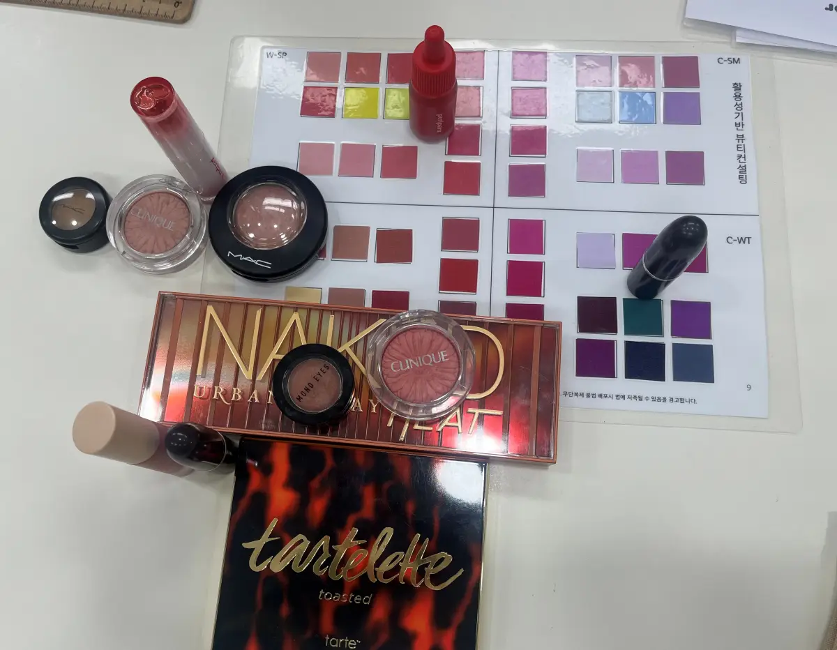 그리고 오른쪽은 제가 가져온 섀도우나 립, 블러셔를 내 퍼스널 컬러와 맞는지 진단해 주시고 안 맞는 거는 어느 컬러 쪽에 맞는 거인지 까지 나눠주세요. ㅋㅋㅋ그래서 아.. 이건 버리는 게 맞겠다 아니면 잘 샀다 이게 명확해집니다.