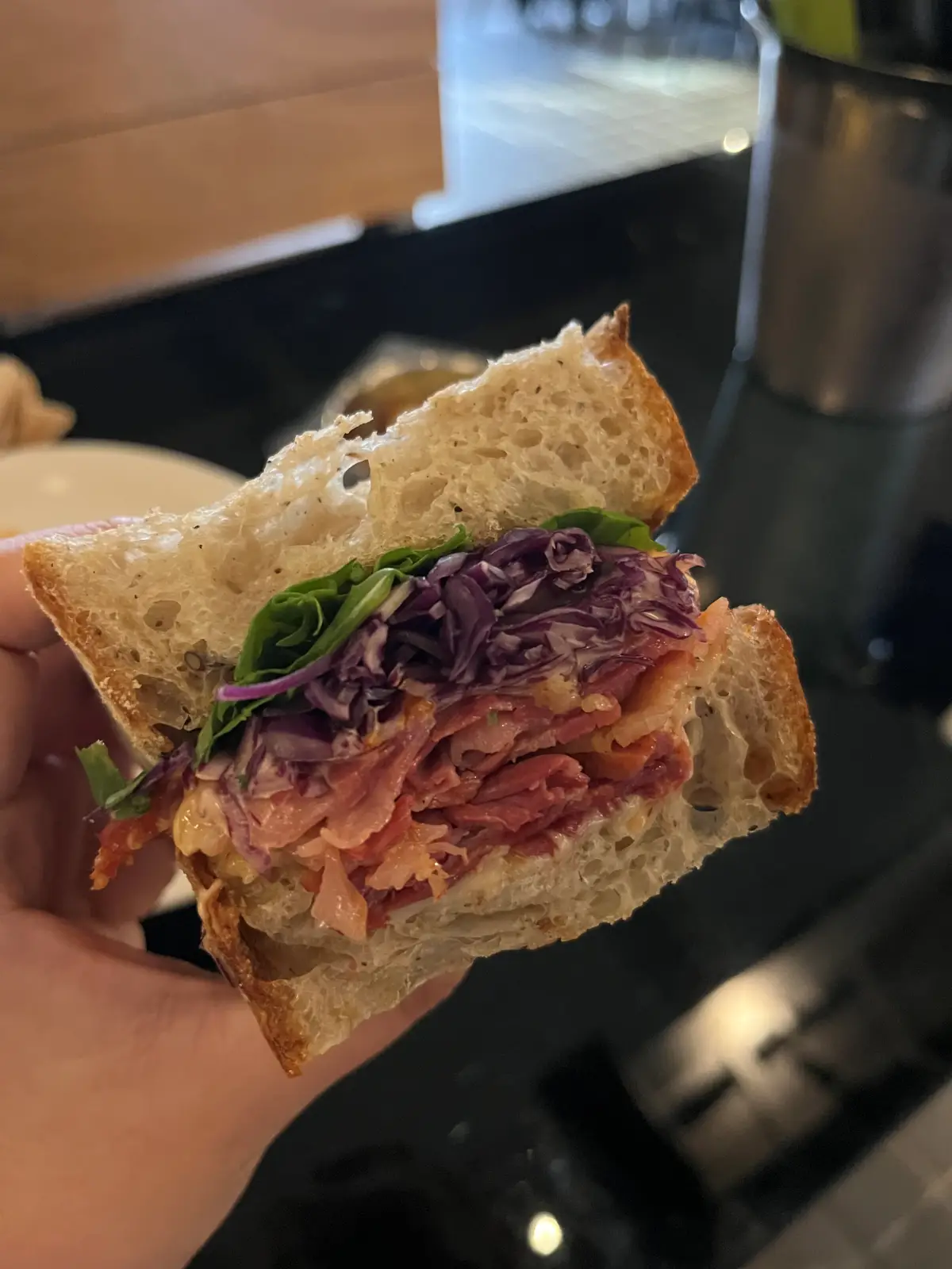 우선 샌드위치에서 가장 중요한 빵이 너무 맛있어요..! 내용물이 많아서 씹는 맛이 좋긴 한데.. 솔직히 양은 적어요.. 친구랑 한 덩어리씩 먹으니 그냥 간식 같았어요. 그렇지만 맛은 너무 좋았답니다~