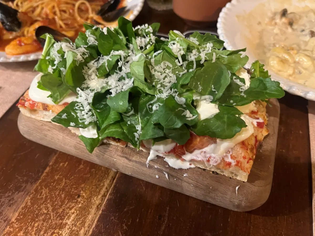 우선 여기 피자 맛집인 게 도우가 쫀득쫀득해요. 그리고 바삭하고 크림소스가 올라가 있어서 느끼하면 어쩌나 했는데 토마토랑 같이 씹혀서 먹다 보니 상큼하고 달달하더라고요. 피자지만 약간 라이트 해서 애피타이저 느낌이에요.