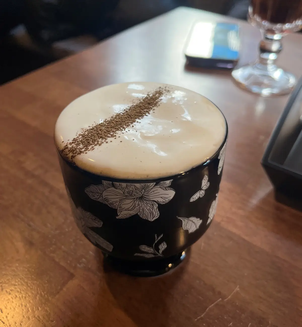 호지오레는 호지차랑 커피랑 달달한 크림이 섞인 커피라고 보시면 될 거 같아요. 약간 아인슈페너처럼 커피 위의 달달한 크림을 같이 마시는데, 커피에 녹차가 섞인 맛? 뭔가 형용하기 어려운데... 차랑 커피가 섞인 맛이에요. 녹차라떼+커피라고도 볼 수 있겠네요. ㅋㅋㅋ애초에 마시려고 잔을 들고 코에 가져다 대면 차 향이 납니다.