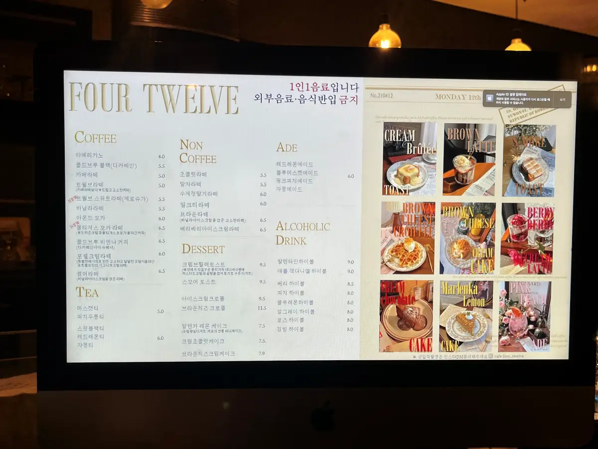 메뉴가 카운터 옆에 모니터로 나타나있어요. 크게 종류는 커피, 티, 커피 외 음료, 에이드, 하이볼, 디저트 이렇게 있습니다. 아니 하이볼까지 있을지는 생각을 못했는데...ㅋㅋㅋ가볍게 술 한잔 하시러 오셔도 좋겠네요.