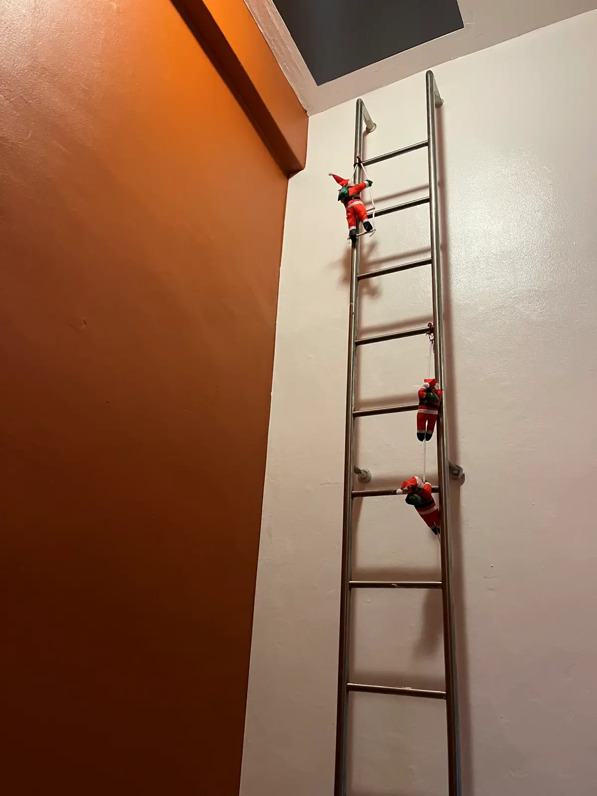 카페 입구부터 뭔가 크리스마스 분위기 물씬 나고 아기자기 한 느낌이 났어요. 2층 올라갈 때는 사다리에 산타들이 매달려있고 ㅎㅎ 들어가자 마자는 크리스마스트리가 바로 보였어요.