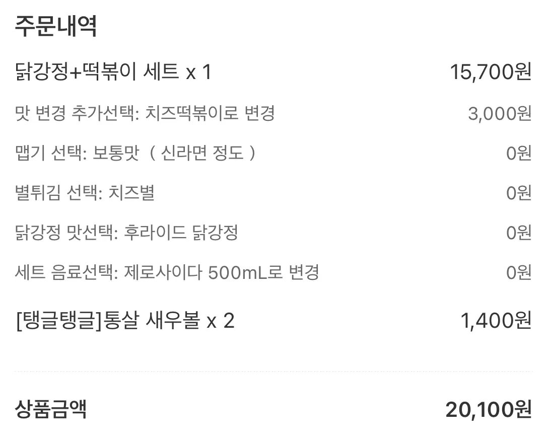 닭강정+떡볶이 세트 (닭강정+떡볶이+콜라 500ml) 15,700원