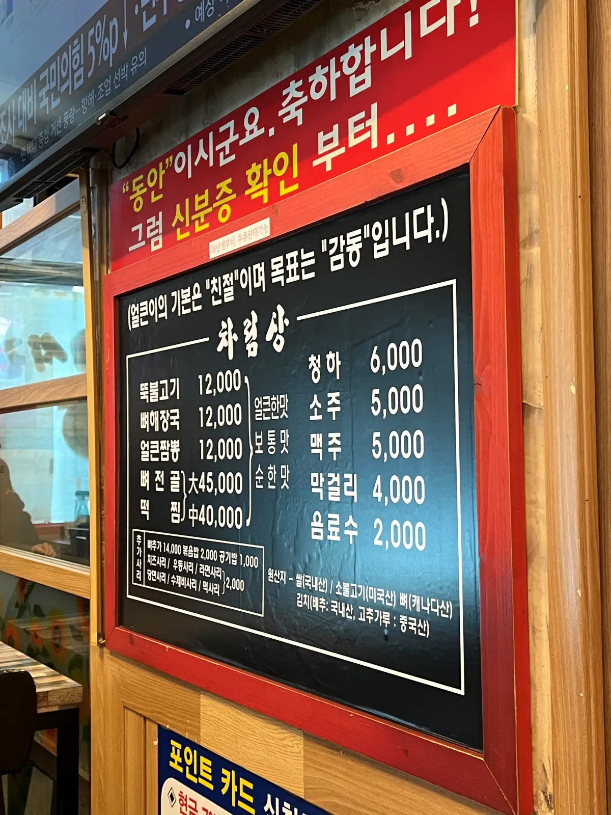 간판에서부터 느껴지는 분위기가 있지 않나요? 찐 맛집 느낌 물씬입니다. 그리고 오래된 느낌도 나요.. ㅋㅋㅋ 24시라고 쓰여있는 거 봐서는 예전에는 24시였나 봅니다. 현재는 24시가 아니라는 거! 영업시간은 위 표에서 확인하시면 됩니다!