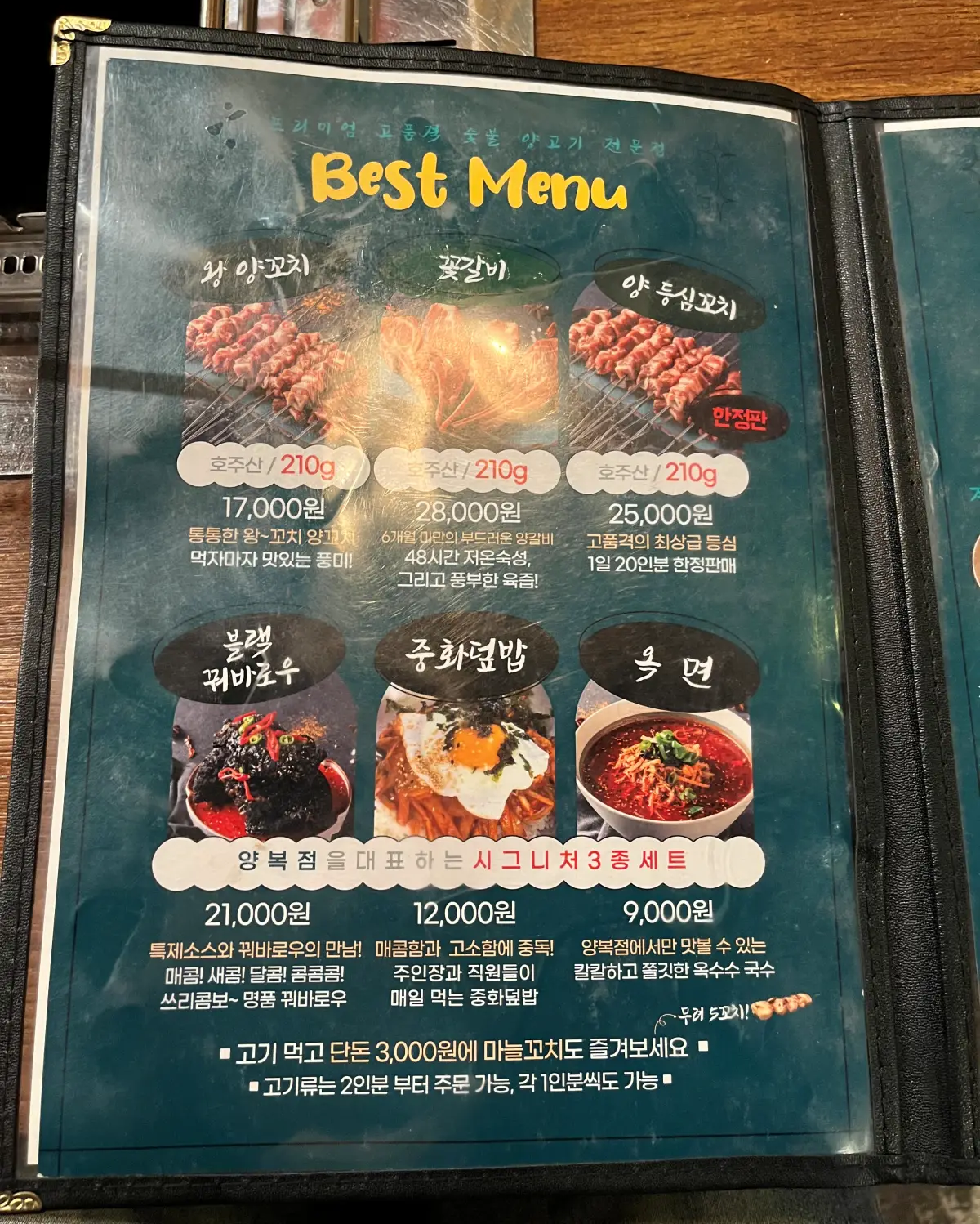 메뉴 한번 보시죠. 메뉴가 다양하긴 합니다. 양꼬치를 기본으로 하고 몇가지 메인 요리를 먹으면 딱인 것 같아요.